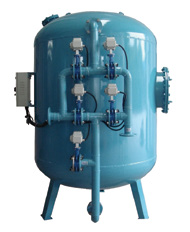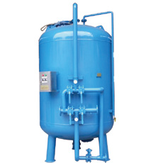 工作原理 : 機(jī)械過濾器 ( 又名多介質(zhì)過濾器、石英砂濾器 )。是一種壓力式過濾器,利用過濾器內(nèi)所填充的精制石英砂濾料,當(dāng)進(jìn) 水自上而下流經(jīng)濾層時(shí),水中的懸浮物及粘膠質(zhì)顆粒被去除,從而使水的濁度降低。
